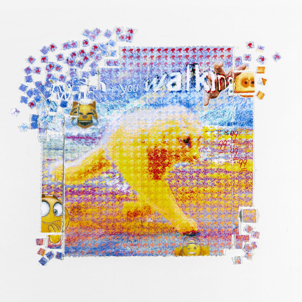 In Deep Fried Memes, images are run through dozens of filters to the point where they appear grainy, washed-out, and strangely colored. The origin of deep fried memes is unknown, they emerged organically through social media and have become synonymous with extensive internet use.